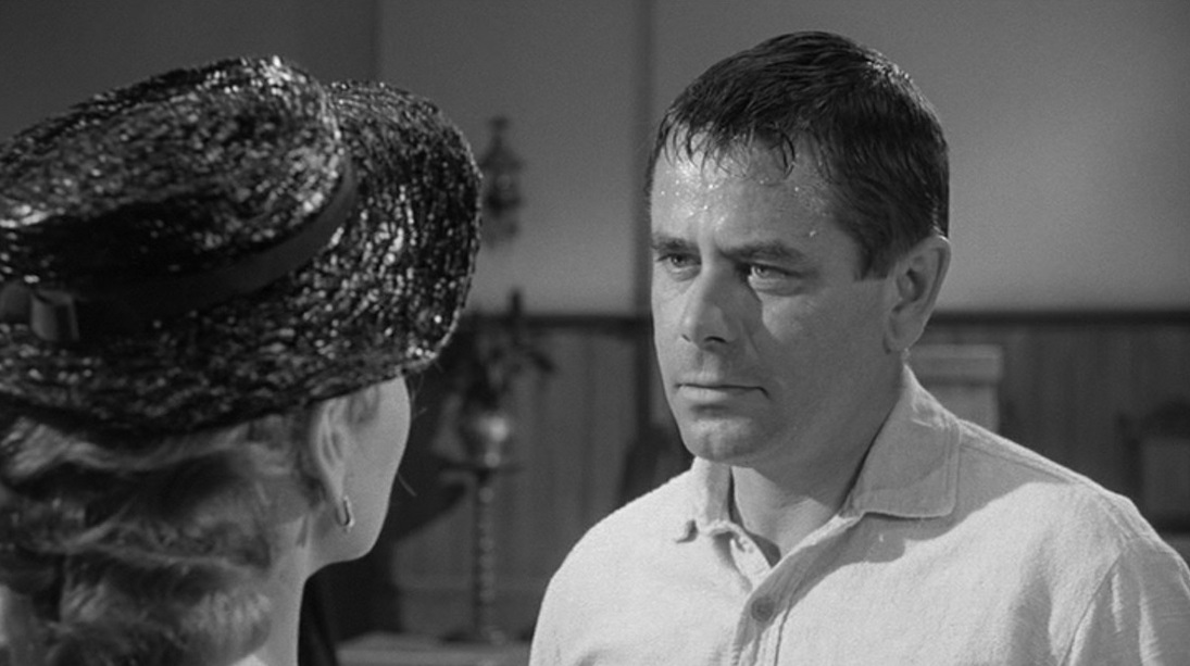 We then skip over to the little town of Cross Creek, where Glenn Ford’s character is out in the desert, shooting at rocks. And studying the notches in his pistol and generally appearing pretty somber.